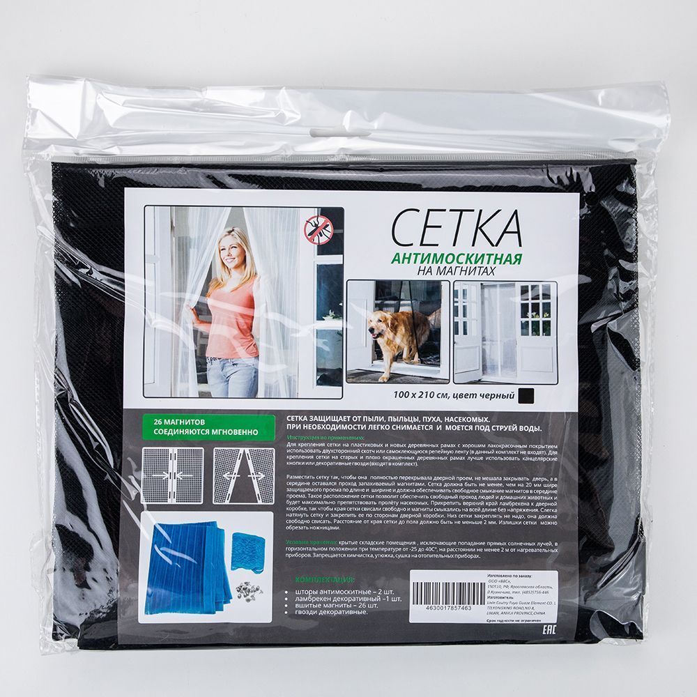 Сетка москитная на магнитах 100х210см черн. (упак.40шт.) купить в Ярославле по низкой цене с доставкой