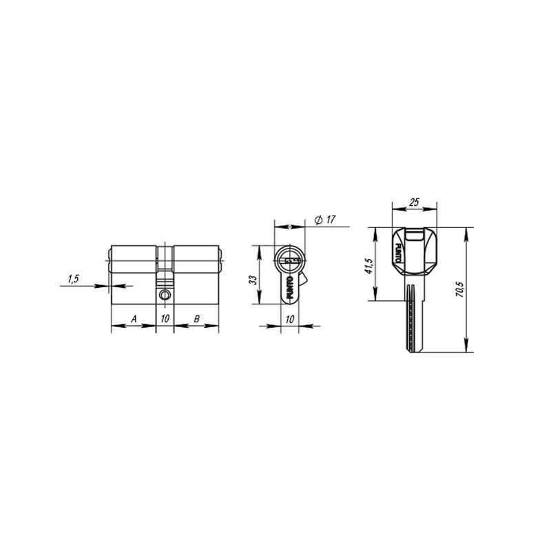 Цилиндровый механизм Punto коллекции SIMPLE LIVING Z400 предназначен для установки в корпуса врезных цилиндровых замков для всех типов дверей. Вариант исполнения: ключ-ключ. Тип ключа: "перфорированный". Материал ключа: латунь с пластиковой эргономичной головкой. Материал ротора: латунь. Количество пинов: 7. Секретность: более 78 000 комбинаций. Работоспособность: более 200 000 циклов открывания/закрывания. Размер: 70 мм. Цвет: хром. Комплектация: 5 латунных ключей с пластиковой головкой, крепёжный винт 70 мм.
